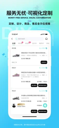 我們提供定制、設計、商品、售后、服務五大保障,全程可視化跟蹤,讓你隨時掌握定制進度。從商品開箱記錄到球鞋設計滿意,再到定制成品鞋滿意,我們?nèi)套o航。更有超長售后保障,讓你無后顧之憂。